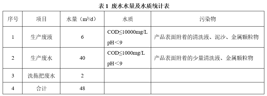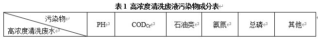 高浓度清洗废液为间歇排放的废槽液,主要来源于前处理槽的倒槽废液,其水质特征是废液浓度高、一次排放量大,其主要污染物为COD、石油类、总氮、磷酸盐、SS和LAS等。