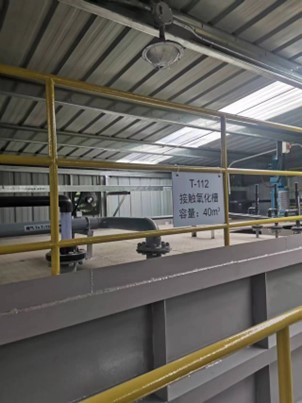 解决方案:物化反应出水先经水解酸化池,在厌氧的环境下,提高废水的可生化性,将大分子有机物转化为小分子有机物并去除部分污染物,并适时投加营养剂,给微生物的生长提高必要能量物质。同时,还可以将厂区生活废水引入生化处理系统,进一步增加废水的有机负荷,从而能让微生物进行生物代谢以降解有机物,使其稳定、无害化。