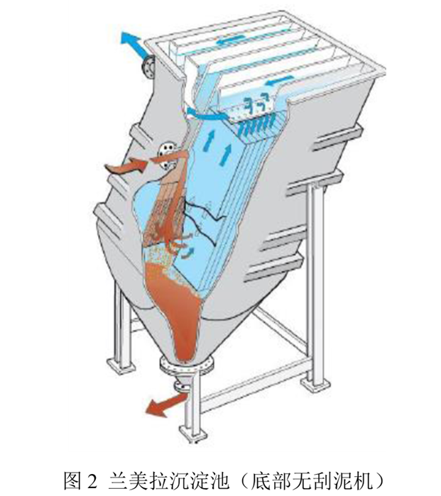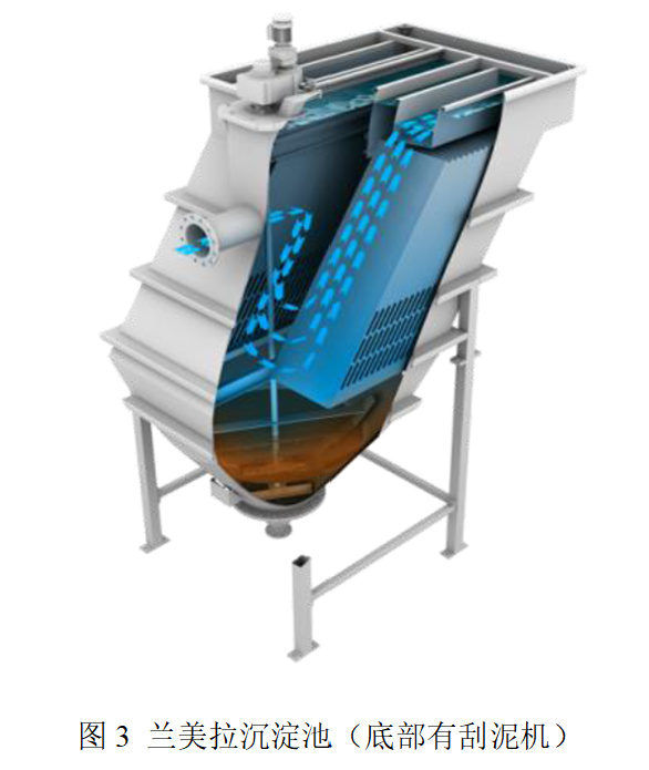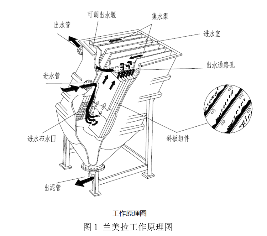 斜板沉淀槽应用于工业废水处理的沉淀池中,其处理效果稳定,维护工作量小。在零部件清洗废水处理中主要采用升流式异向流斜板沉淀池和兰美拉沉淀池,本文以兰美拉沉淀池的应用于零部件清洗废水处理为例说明。